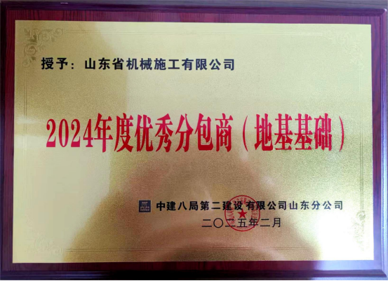 2月15日,在中建八局第二建設(shè)有限公司山東公司分包商大會上,再傳捷報,公司榮膺“2024年度優(yōu)秀分包商(地基基礎(chǔ))”稱號。
